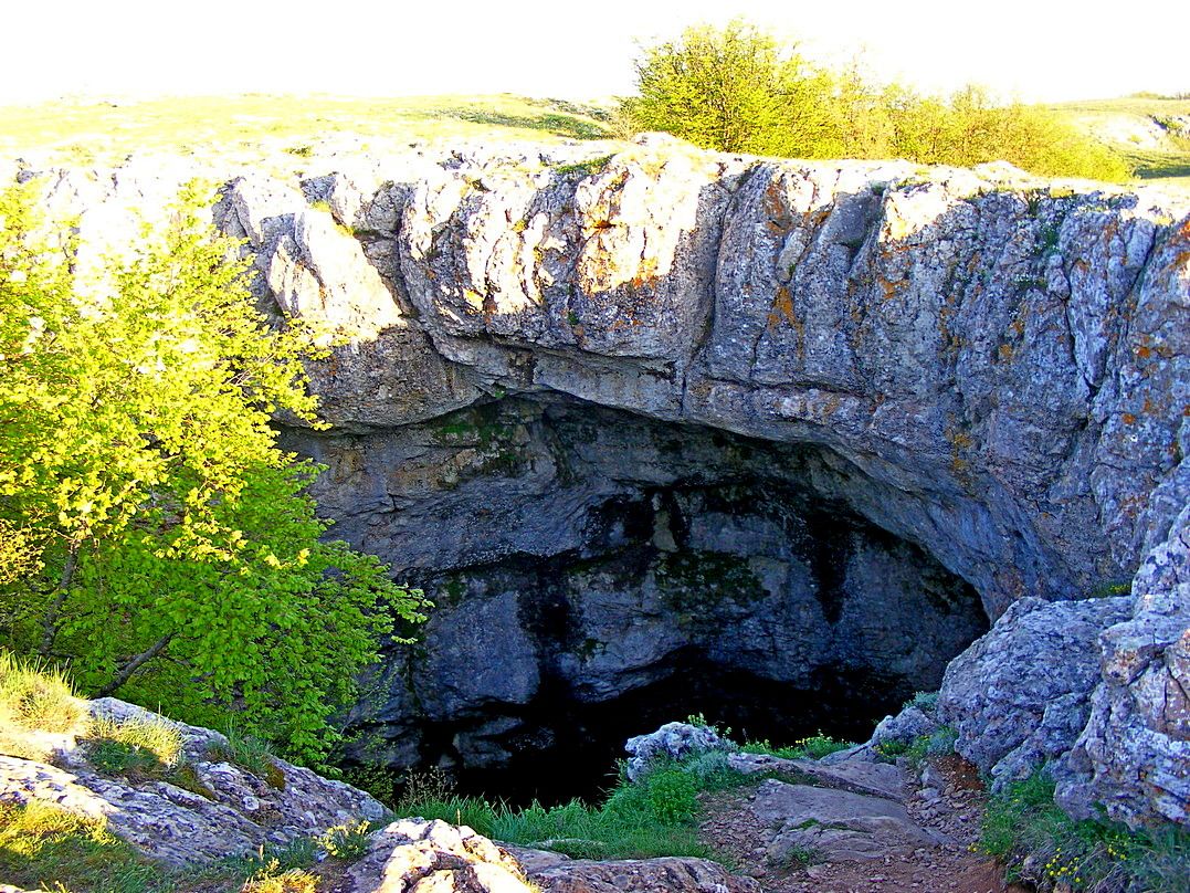 Общая площадь всего массива составляет порядка ста двадцати квадратных километров, что больше, чем Симферополь! Можете представить, сколько нужно времени, чтобы пройти все плато зигзагами? Именно поэтому, мы с вами ограничимся выдающимися образчиками местных достопримечательностей. Начнём с посещения пещеры им. Мамина. Название ее отсылает вовсе не к родительнице, а к исследователю, фамилия которого была Мамин. Сама пещера достаточно интересна не только своей внутренней частью, но также и входом, который при правильном ракурсе и времени суток, превращается в глаз, со зрачком-солнцем.