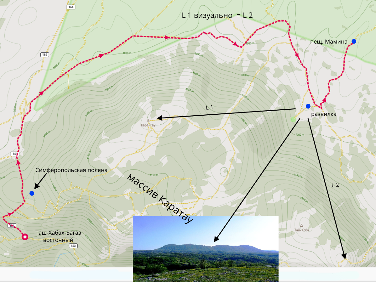 - Максимум, куда вы доедете на УАЗе это Симферопольская поляна. Дальше дорога перекрыта, только пешком. Выйдя из леса всё время держимся правых дорог огибая массив Каратау с севера.