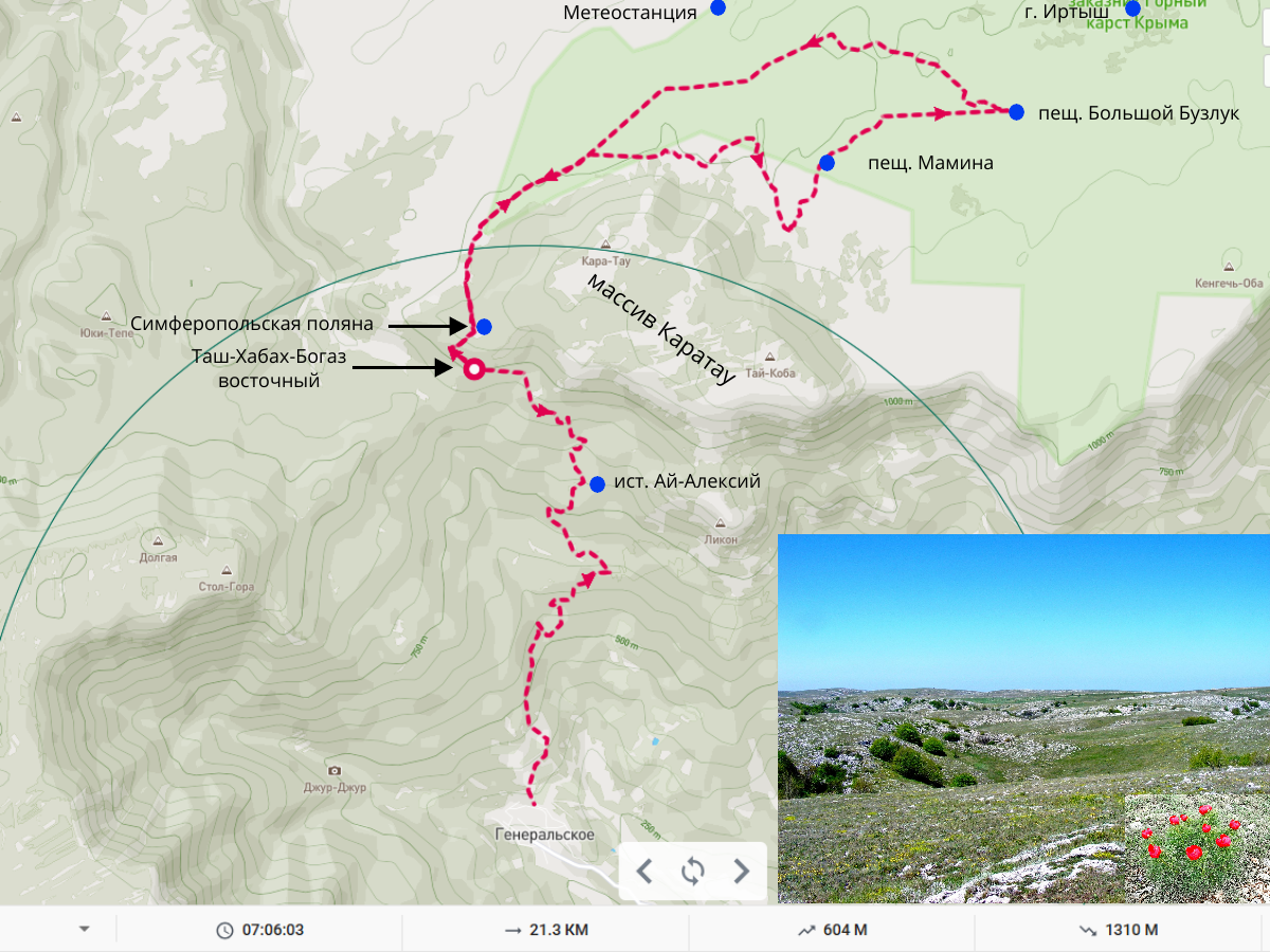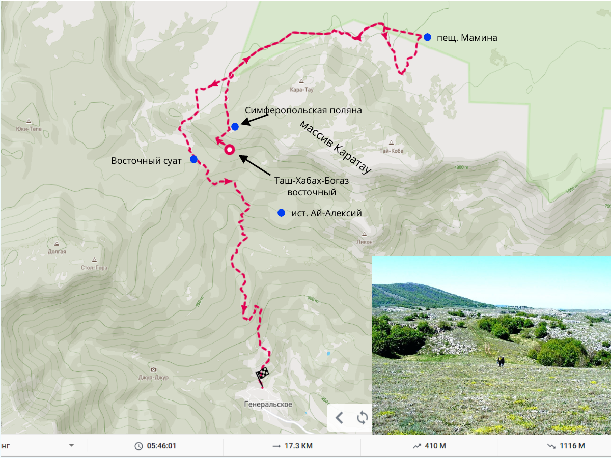 Маршрут однодневного похода на плато Караби к пещ. Мамина и пещ. Большой Бузлук разработан для тура на Майские праздники. Может использоваться для самостоятельного путешествия или в других походах.