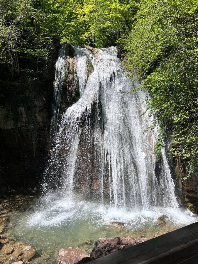 Поднимаясь по старой, некогда асфальтированной дороге, войдем в густой, буковый лес, двигаясь по склону, сходящему к реке Улу-узень. И первой достопримечательностью, с которой мы встретимся будет водопад Джур-Джур. Самый полноводный водопад в Крыму может показаться более скромным в сравнении с другими крымскими гигантами, но это чувство складывается лишь из-за его высоты. Если же сравнить сами потоки воды, то в полной мере становится видно всю мощь Джур-Джура.