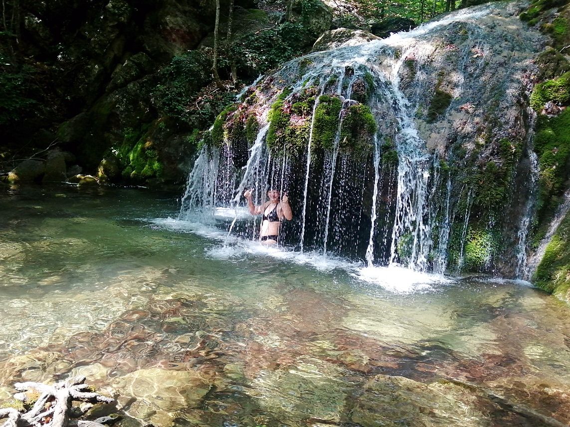 Но на нем одном наш путь не закончится! Ведь в ущелье Хапхал находится еще тринадцать водопадов, каждый из которых мы сегодня посмотрим! Будучи не такими знаменитыми и выдающимися, они часто не имеют названия, а даже если и имеют, то оно, можно сказать, сезонное. Что, однако, не умаляет их красоты! Перебравшись через стену у "ванны молодости" уйдём в дикую часть ущелья.